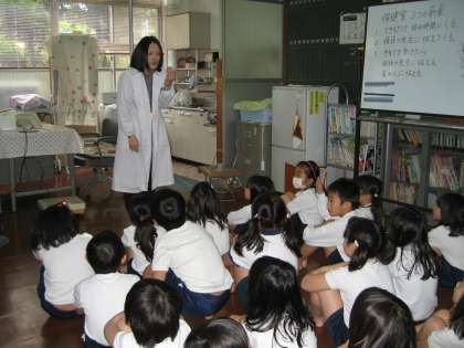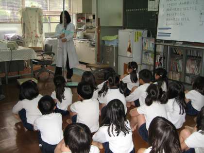 午前中に保健室で身体計測をしました。近藤先生のお話を聞くのは初めてです。今日は保健室の使い方についての話でした。しっかり聞いていました。その後身長・体重と座高を測りました。大きくなったね。