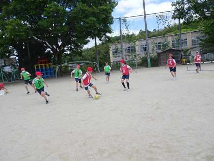 体育がある時に限って雨が続き、なかなかサッカーができなかったのですが、9日に久しぶりの体育「サッカー」をしました。チームで作戦を考えたり、声を出してアドバイスし合ったりしながら、楽しみながら活動していました!