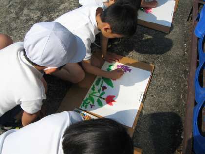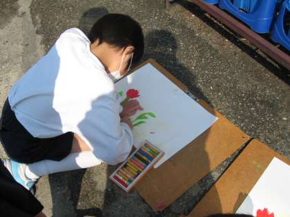 今日も春らしい暖かな1日でした。図工の時間は,中庭で春の花を描きました。2年生のチューリップが一斉に咲きました。見ごたえがあります。みずやりをしたチューリップやすみれなどをしっかり観察して描いていた子ども達です。