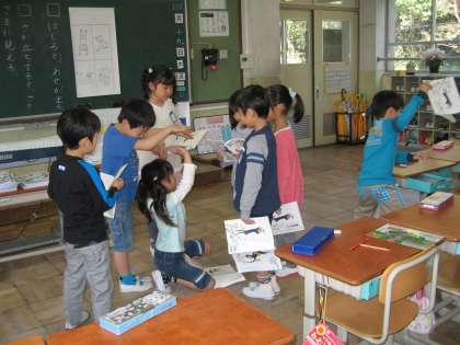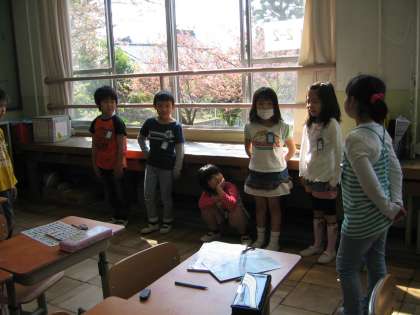 国語では,「ふきのとう」の学習をしています。場面ごとの登場人物の様子や気持ちを読み取った後,読み声で表していく学習をしています。初めての参観日には,音読発表会をご覧いただきたいと思います。発表会に向かって練習をがんばっている子ども達です。