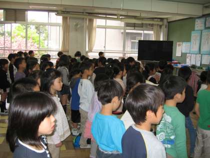 5校時の音楽は,来週予定されている「1年生と2年生が仲良くする会」や「1年生を迎える会」の歌の練習をしました。練習を重ねるごとに,きれいな歌声になってきます。本番はもうすぐ!がんばって練習している子ども達です。