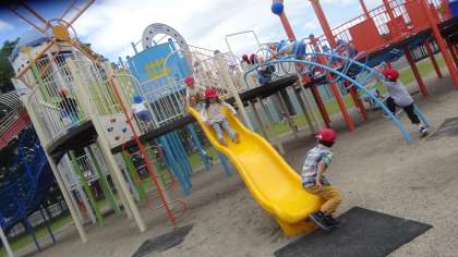 たくさんの遊具、広い芝生の広場に、うきうきした様子で体をたくさん動かしていました。