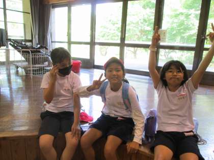 川遊びの用意をして、オリエンテーションホールに集合しました。