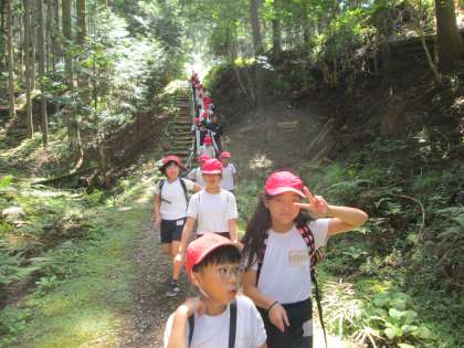 親水広場まで、花背の山道を少しハイキングしていきます。