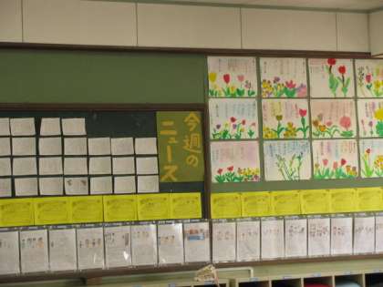 ある教室の後ろの掲示板の様子です。