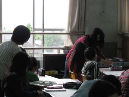 自学級の子どもたちが専科の授業に出かけている時間を活用した,学年内での協力指導です。