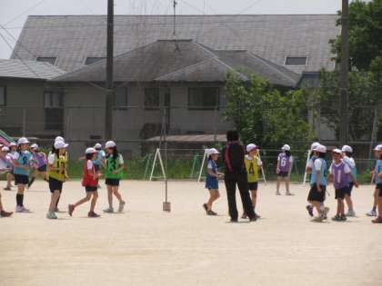 それぞれ自分のチームメンバーに対して,「○○さん,がんばれー!」と大きな声援を送っています。