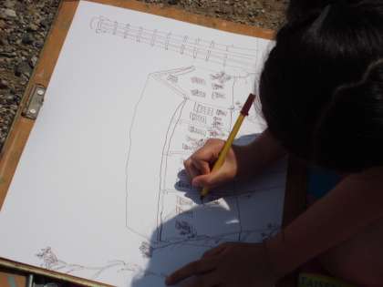 瓦一枚一枚,れんがの様子などしっかり描きました。