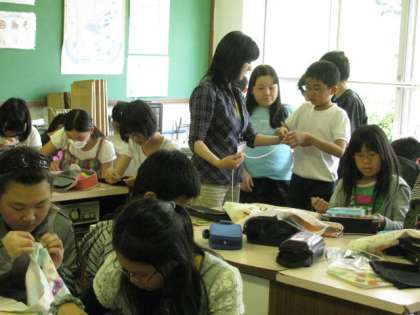 6年生の家庭科には,外部講師のスクールサポーターが来校し,指導支援をしてもらっています。