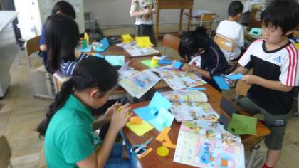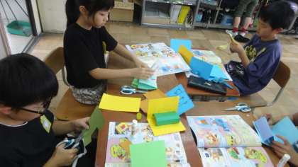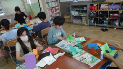図工の学習では、「幸せを運ぶカード」を作る計画を立てています。