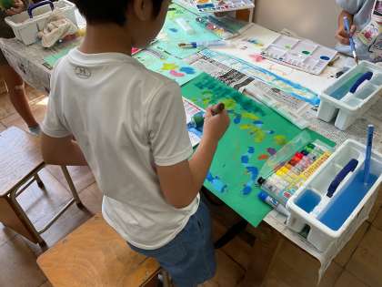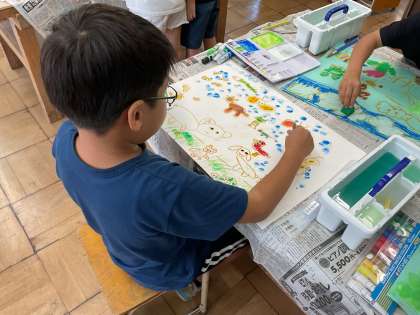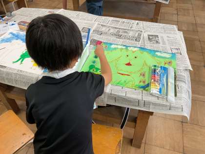 絵の仕上げに、絵の具を使って色を塗りました。素敵な作品に仕上がっています。おうちでも是非どんなお話だったか聞いてみてください。