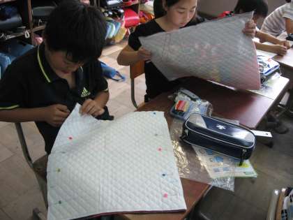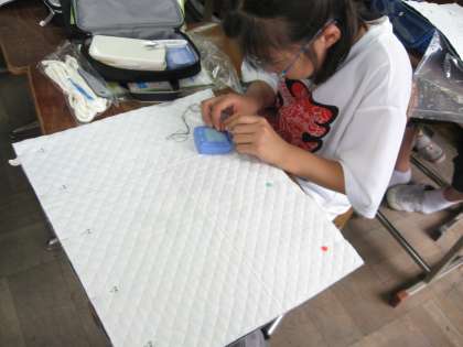 自分の好みの柄を選び,本返し縫いで丁寧に縫い始めました。