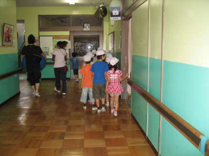 今日は呉竹総合支援学校へなかよし交流のため出かけました。各クラス2グループに分かれ,学校探検とゲームをしました。学校探検では,呉竹校の先生に色々なところを案内していただきました。車椅子といってもたくさんの種類があることに驚いていました。また,スクールバスの中も見学させていただいて,工夫されているところを発見しました。桃山小学校との違いをたくさん発見した「なかよし交流」でした。