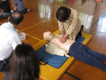 今日の放課後は,伏見消防署員の皆様のご指導を得て,教職員対象の「救命講習会」を開催しました。