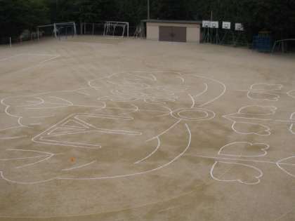 運動場全体に,桃山小学校の校章が大きく白線で描かれています。