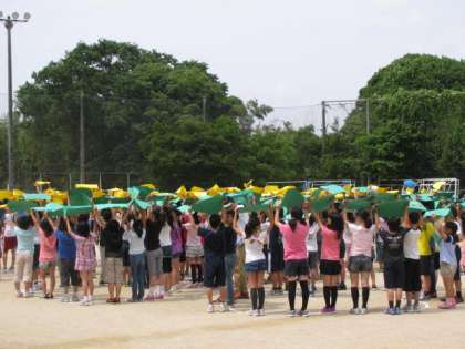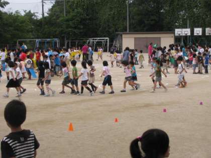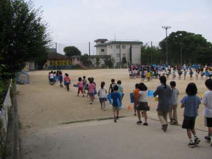 校内放送の指示に従って,担任に誘導された子どもたちが運動場へと出てきました。
