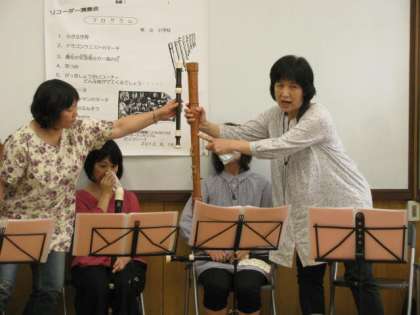 子どもたちが興味を持ってリコーダーの練習に向かってほしいと思い,今日は,リコーダーアンサンブル『ピッコリーナ』の皆さんをお呼びして,リコーダーの演奏を聞かせてもらいました。