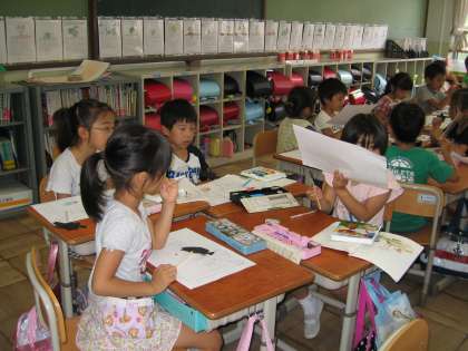 今日の国語では,一人ぼっちになったスイミーが海の底のおもしろいものやめずらしいものを見てだんだん元気を取り戻す場面を考えました。「虹色のくらげってきれいだろうなあ。」「見たこともない魚ってどんな形かな?どんな色なんだろう?」と想像がふくらみます。子ども達もスイミー同様だんだん元気になってきました。