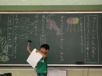 今回もスイミーのペープサートを使って発表しました。スイミーになって気持ちをうまく表現していた子ども達でした。