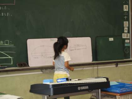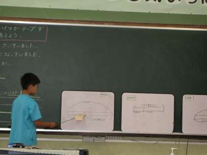 算数の授業は「かくれた数はいくつ」に入りました。文章題をテープ図を使って考えていきます。「ふえるといくつ」では,読み取りが難しくテープ図がたしざんの場合とひきざんの場合が出てきました。そこでテープ図を書いた理由を説明してもらいました。友達に自分の考えを伝えることの難しさを実感した子ども達です。これから,このような説明の練習をしてどんどん伝えていきたいと思います。