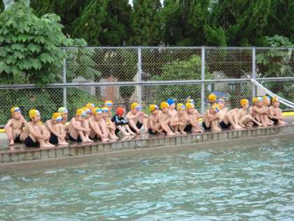 そして,「寒いかな・・・」「水の中は冷たいかな・・・」と入水。「キャー」「冷たい!!」とやはり少し寒かったようであちこちで声があがっていました。