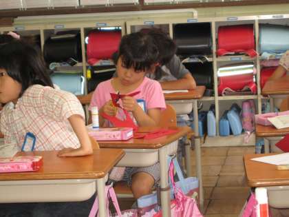 「スイミー」のお話で子ども達がお気に入りの場面は,小さな魚達が大きな魚のふりをして大きなまぐろをやっつける場面です。今日はみんなでその大きな魚を作りました。「力を合わせて」「協力すること」「みんな持ち場を守ること」・・・・そんな思いを込めて1枚ずつ切り取りました。それを貼っていくとだんだん魚の形になっていきます。この魚のようにクラスのみんなが協力して,目標に向かってがんばっていきたいです。