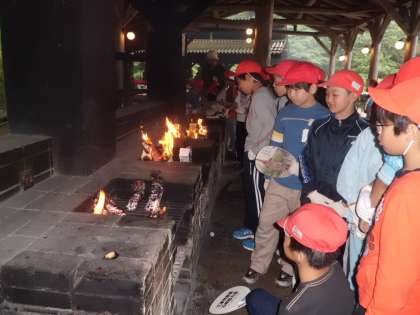 雨が降っていましたが,野外炊事場は屋根もあるので大丈夫。