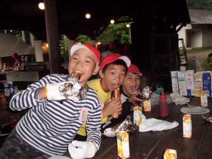 2日目の朝ごはんは,パックドッグを作って食べました。