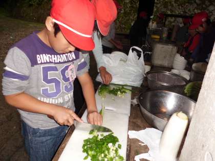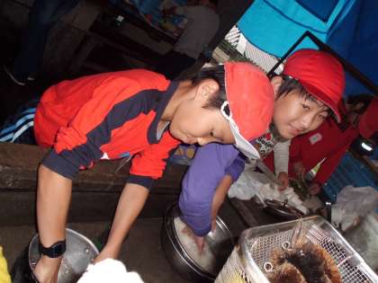 昨日の午後,魚焼きをして魚を食べたあと,野外炊事に挑戦しました。