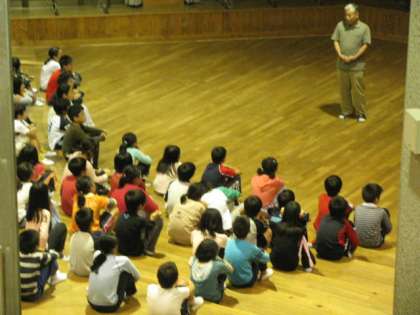 昨夜は天体観測ができずに、オリエンテーションホールで天体のDVDを見ました。
