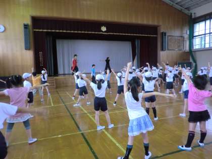 京都の歌がでてきたり,かっこいいふりつけがでてきたりと,子どもたちもやる気まんまんです。来週にも来ていただき教えていただきます。運動会に向けてみんなで1つになって取り組んでいきたいです。