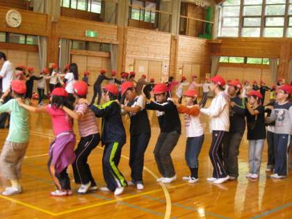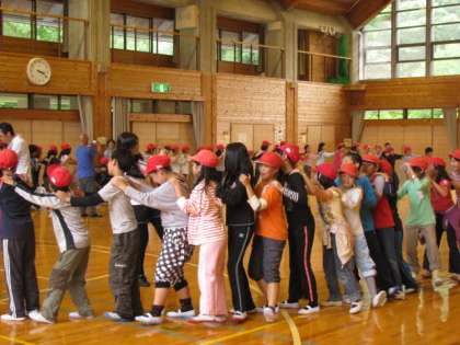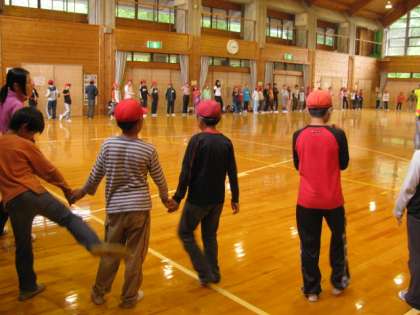 午後はフライングディスクの予定でしたが、小雨がぱらぱらとふってきたので、プレイルームでスポーツ活動と、マイムマイムやジェンカをみんなで踊って楽しみました。