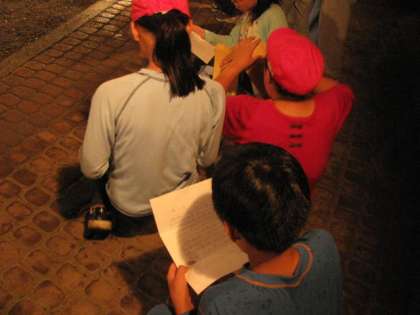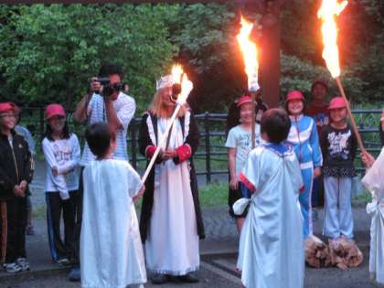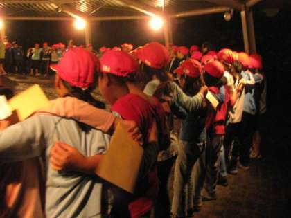 ファイヤーに照らされた文字を読み進むうちに感激して、涙ぐんだり、中には号泣する子どもも・・・。