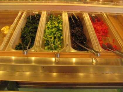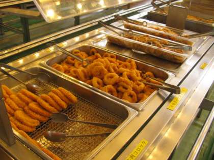 それぞれ好きなものを貰った後テーブルにつき,後の副食はバイキングです。