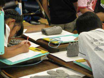 3年生の教室では,図工の作品鑑賞会をしていました。お友達の作った粘土の作品を見つめ,良い所や工夫しているなぁと思っているところなどを,カードに書いていました。鑑賞も大切な学習です。お友達の良さに気付き,これからの自分の製作に役立てられるといいですね。