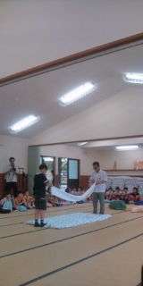 その後,プレイホールで入所式を行ってから,90畳の部屋で寝具準備などの説明を受けました。
