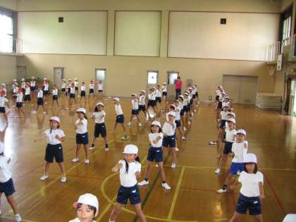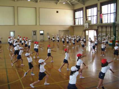 休み明けの1・2校時は体育でした。1校時は踊りの練習です。先週覚えたことを振り返るところからしましたが,残念ながら忘れている人が多かったです。何回かくりかえすうちに思い出してきました。今日も新たな振りつけを覚えました。どの人もがんばって練習していました。その後2校時は50メートル走の走順を決めました。1回だけ走りました。こちらは,もう競争心を出して走っていた子ども達です。