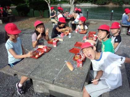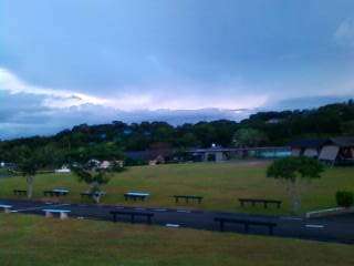 起床時刻,午前6時。バンガローやテントから子ども達の元気な声が聞こえてきます。少し肌寒いですが,空を見ると,よい天気になりそうです。
