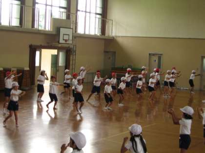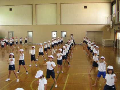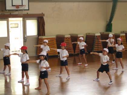 今日も2時間続きの体育がありました。体育舘で「カンフーファイト」の練習をしました。やっと3分の2ほどの振り付けをしました。途中むずかしいところがあって,何度も何度も練習をしました。あせをかきながら,がんばっておどりました。だんだんカンフーらしくなってきていました。本当にがんばったね!