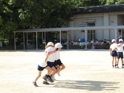 今日は2時間続きで運動会に向けて練習をしました。5校時は体育館で腕の組み方や脚の合わせ方を確認し,6校時外へ出て実際の距離を走ってみました。・・・とは言え,まだ走ることのできないチームもあり,息を合わせること・声を出すことを頑張って練習しています。