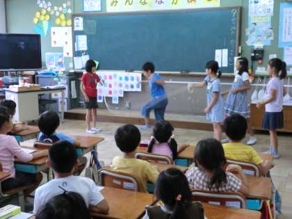 司会をつくって進めたり,具体的なものや写真を見せたり実演したりして説明したりと工夫をしていた3年生。話し方も,作文を書くときのようにはじめ・なか・おわりと聞きやすいように内容を組み立てていました。1年生にとってはこれから経験する行事もあったので,おわりの部分では,「1年生もぜひ,○○○してください。」と呼びかけているグループが多かったです。