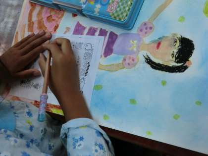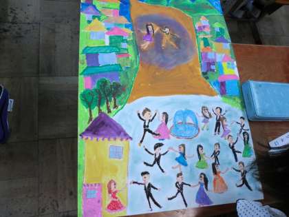 図工で取り組んでいたお話の絵が完成してきました。お話を聞いて想像を膨らませた絵の世界がのびのびと表現されていて楽しい作品がたくさん出来上がりました。