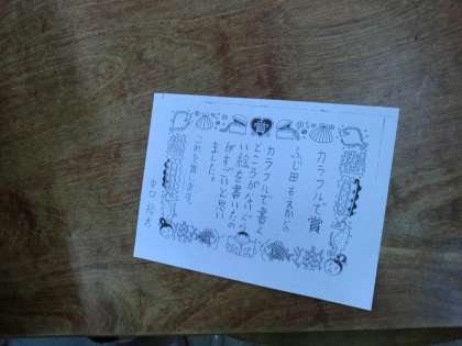 今日は出来た作品を互いに見合って,よいところを具体的に伝え合う活動をしていました。「カラフルで賞」「たのしそうで賞」など,賞状形式にして作者である友だちに渡し,互いのよさを認め合っていました。