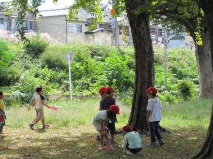 公園でも,いちょうの葉や小さなどんぐりなど,いろいろな秋を見つけることができました。初夏の頃に公園に行ったときとは違って涼しい風も吹き,子どもたちは体いっぱいに秋を感じることができました。