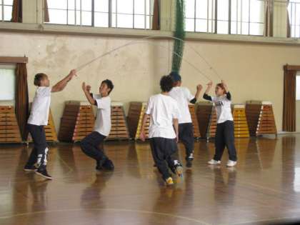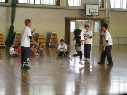 後半は,ダブルでまわされる縄の跳び方を一人ずつ教えてもらいました。