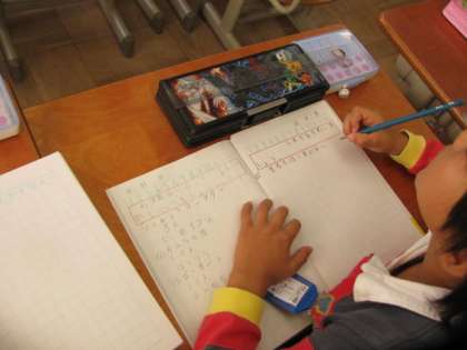 日付を書くこと,めあてを書くこと,定規を使って線を引くことなど,ノート作りが正しく定着しています。また,算数科であっても,文字を丁寧に書いているのも大切なことですね。