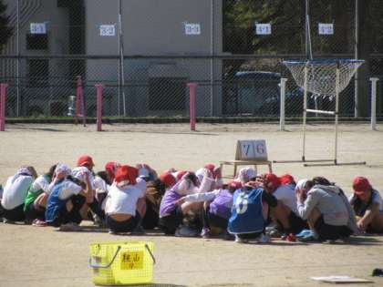 日頃からの訓練の積み重ねと,事前指導の成果で,合図でどの子も一斉にその場で安全行動を取ることができました。
