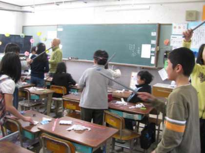 4年生の教室からは,楽しげな賑わいが届いてきました。