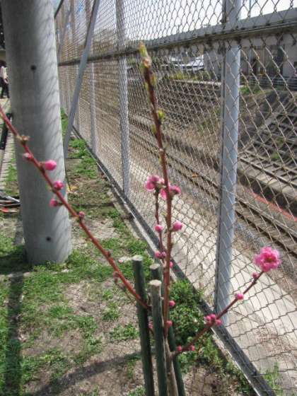 運動場南側の植樹しましたので,成長すれば美しい桃の花をJRの車窓からも楽しんでいただけるのではないかと思っています。