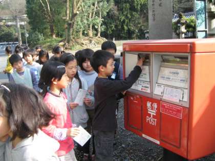 生活科でのアルバム作りを通して,生まれる前から今まで,家族の人たちに大切に愛情をこめて育てていただいたことを子ども達は感じたようです。そのお礼を今回は手紙で伝えることにしました。一人ひとりはがきに「ありがとう」の気持ちを伝える文章を書きました。そして,宛名書きにも挑戦しました。どの人もとても丁寧に書いていました。おうちに届いて家族の方が手になさるのをわくわくしながら楽しみにしている子ども達!いつ届くかしら?どうぞお楽しみにお待ちください。